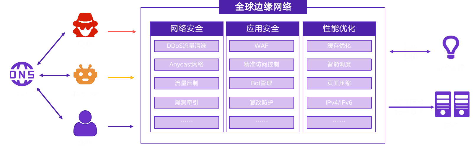 Web安全+DDoS攻击一体化防护,兼顾黑客入侵和DDoS攻击防护,支持IPv6/IPv4双栈