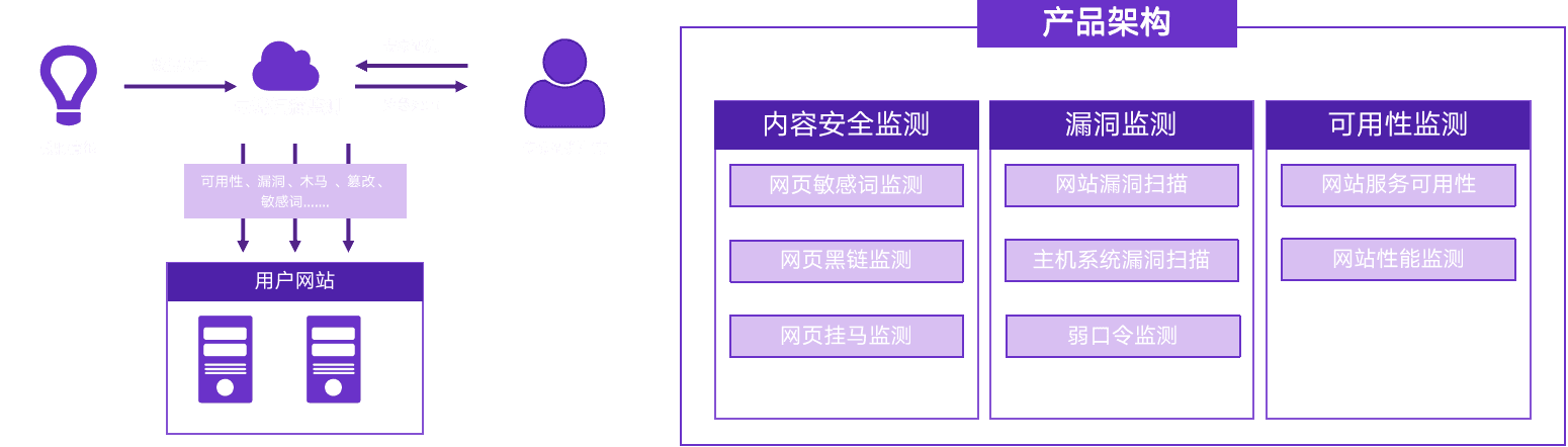 采用非侵入SaaS模式,为客户提供主动的网站安全监控与检测的产品